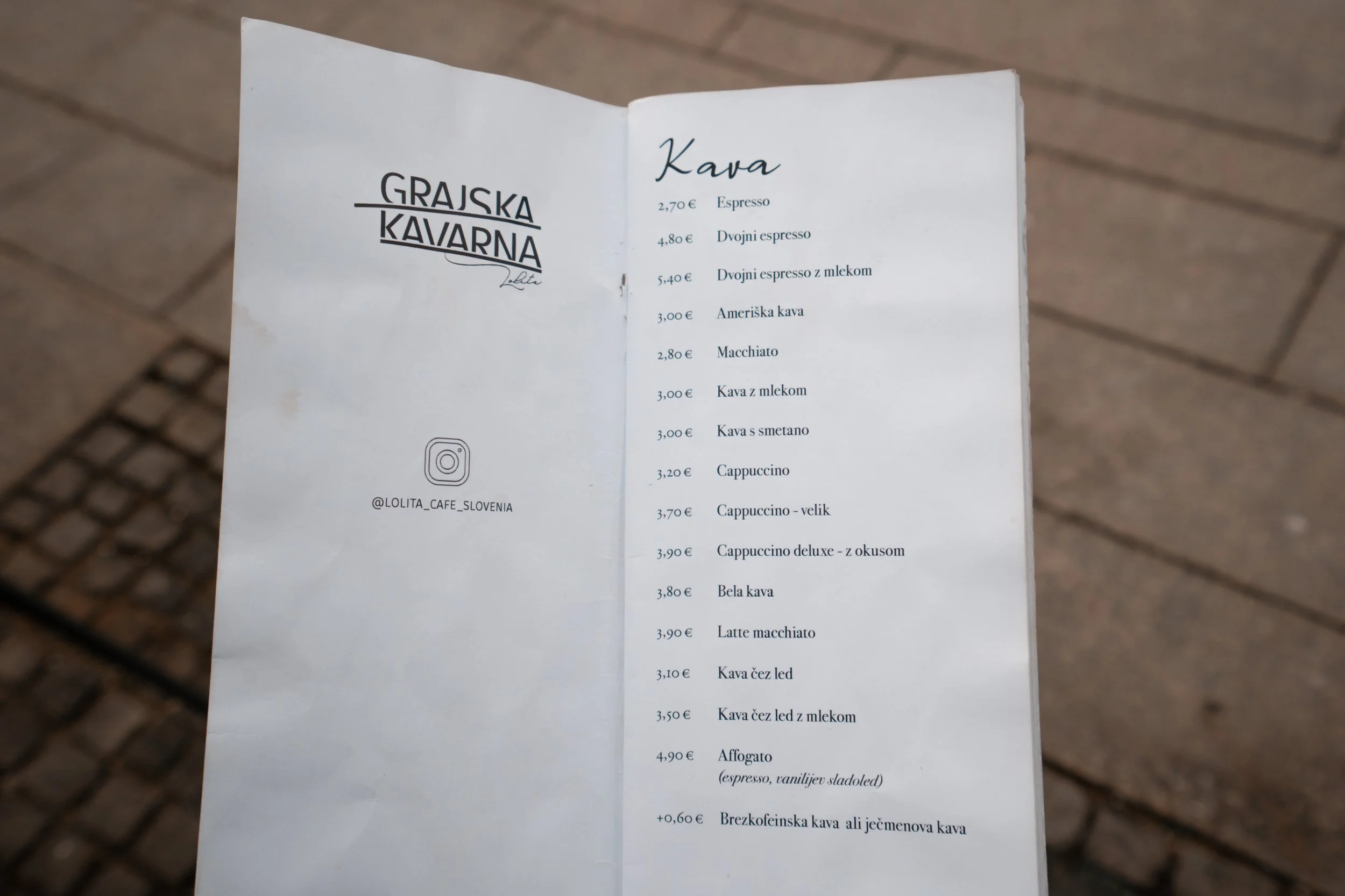 Ljubljana Castle has two restaurants with fine dining (one of which has been awarded a Michelin Star) and a cafe with snacks, desserts, and beverages so you have plenty of choices if you need some sustenance or a coffee pick me up. You can read read full descriptions of the restaurants and cafe here. We didn’t end up getting anything to eat or drink, but I did pick up a menu for the cafe on one of the tables along the castle courtyard and the prices were pretty reasonable. Justin sat down at one of the tables to rest and a waiter rushed out to take his order, so apparently that’s how you can order something if you’re interested.