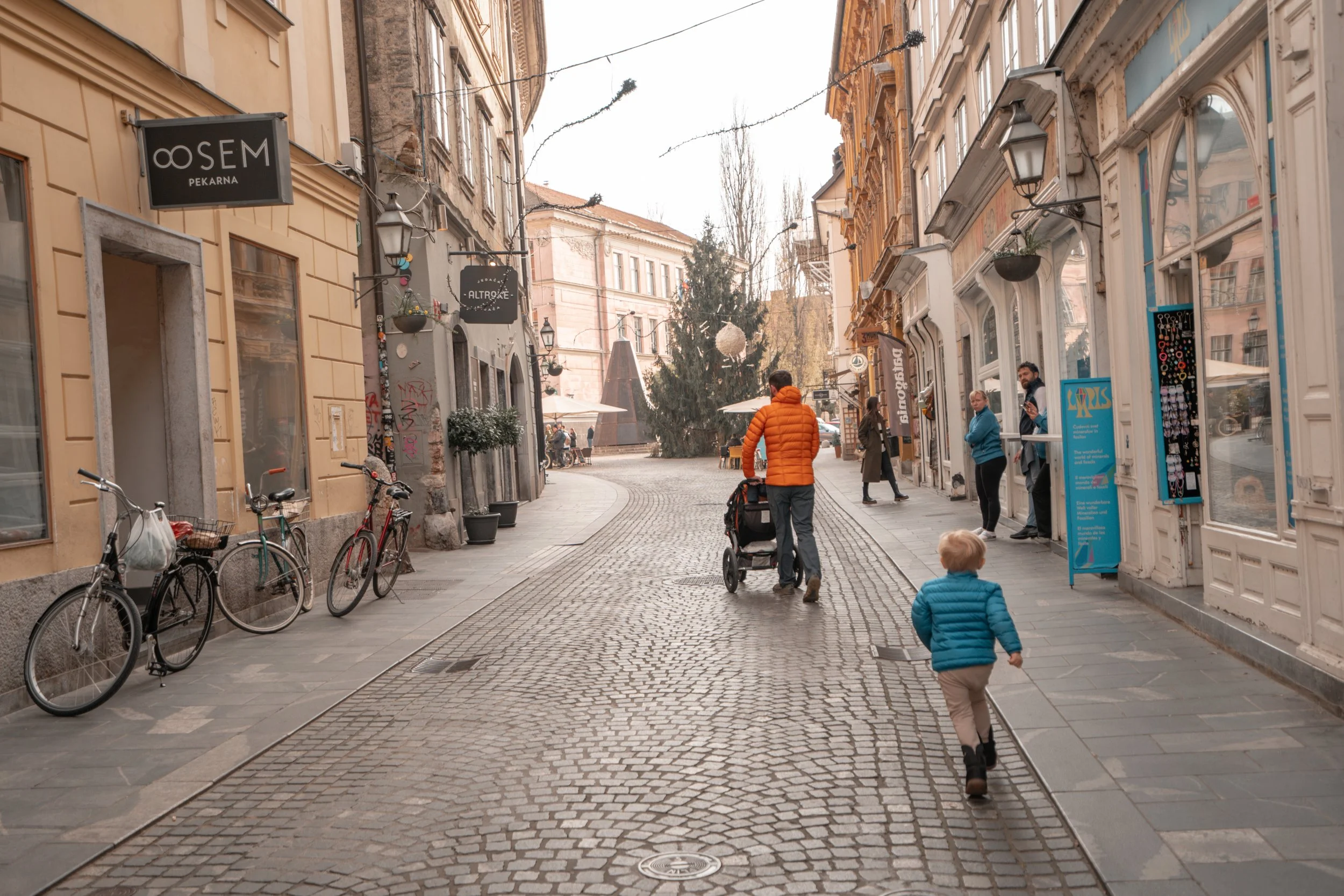 Lovely stroll through the pedestrian area of Ljubljana’s historic downtown area to reach the street to the castle