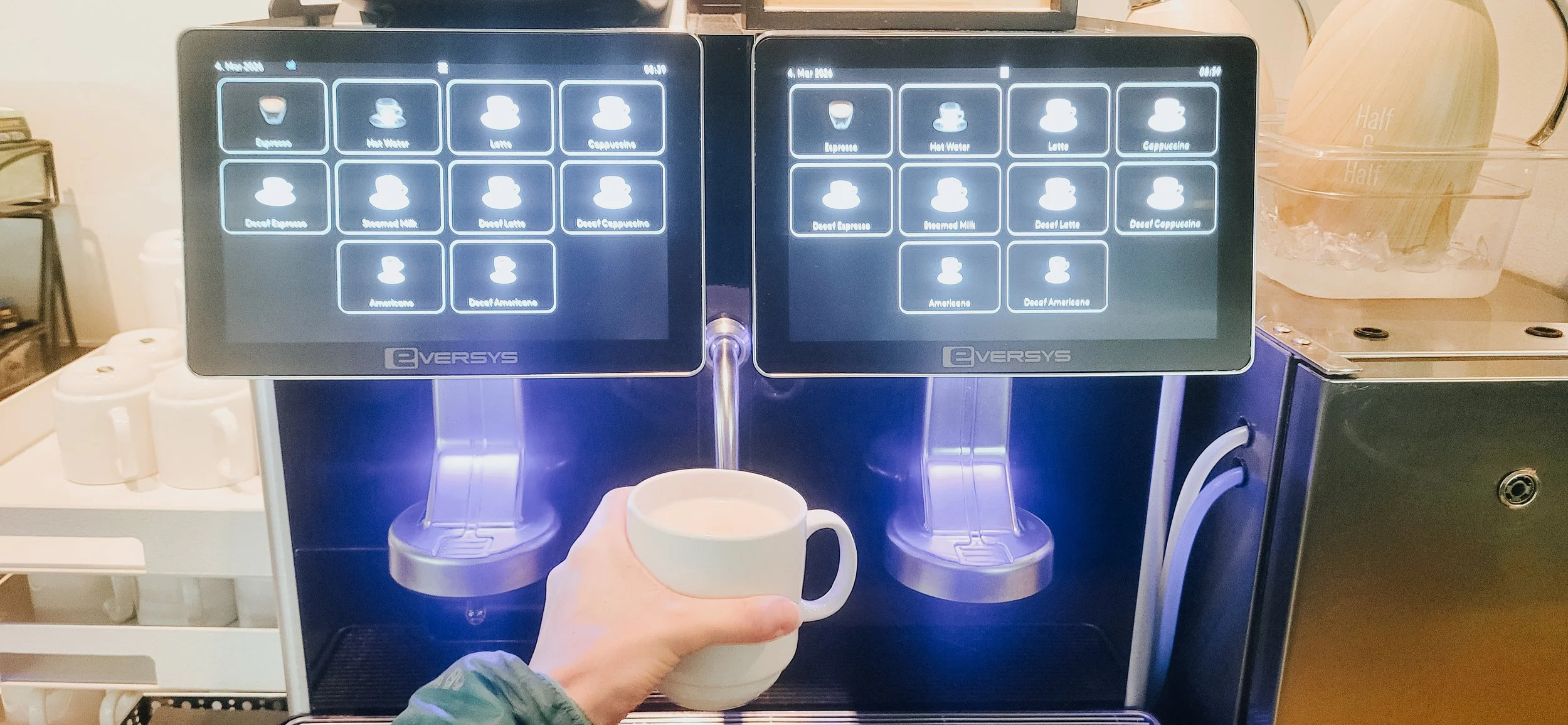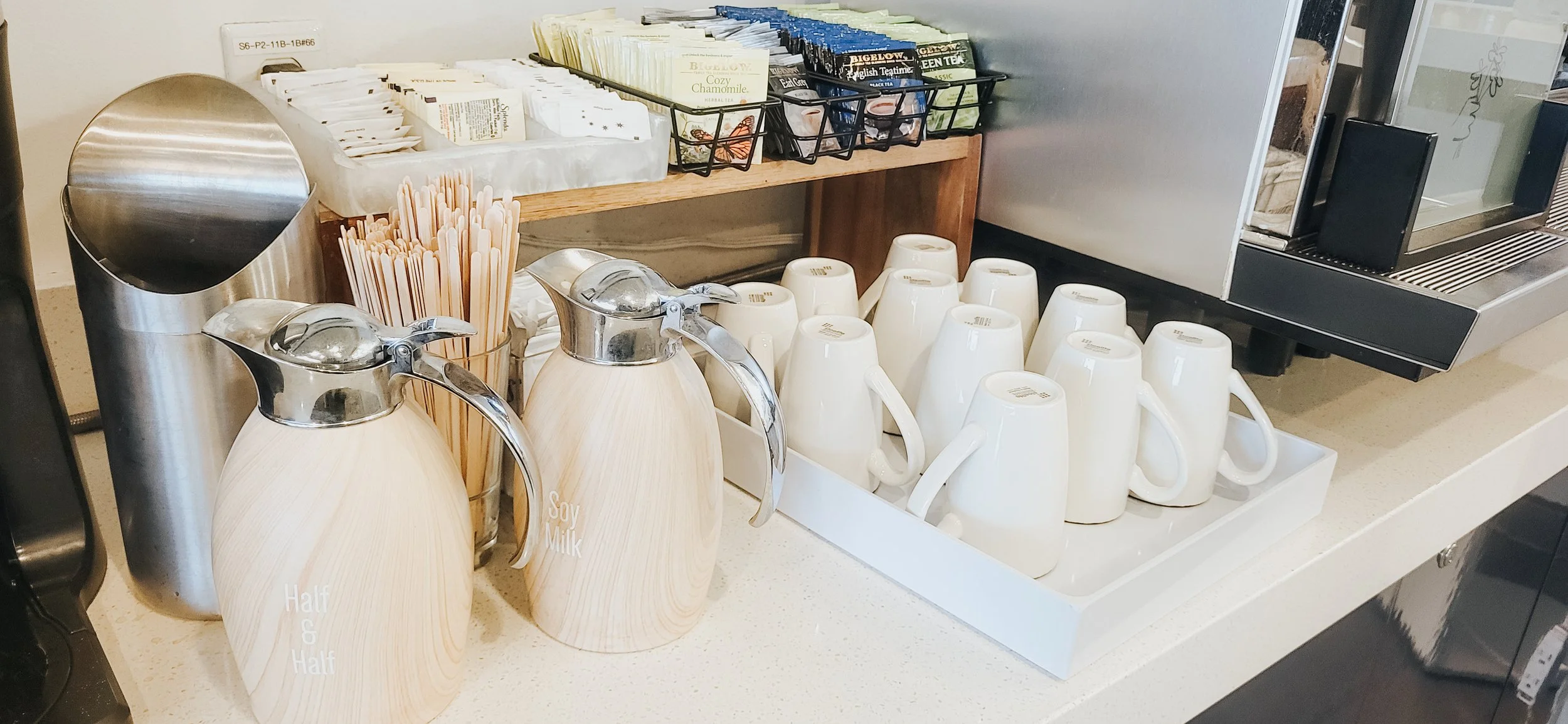 Fancy coffee machine and non-coffee options like tea and hot chocolate